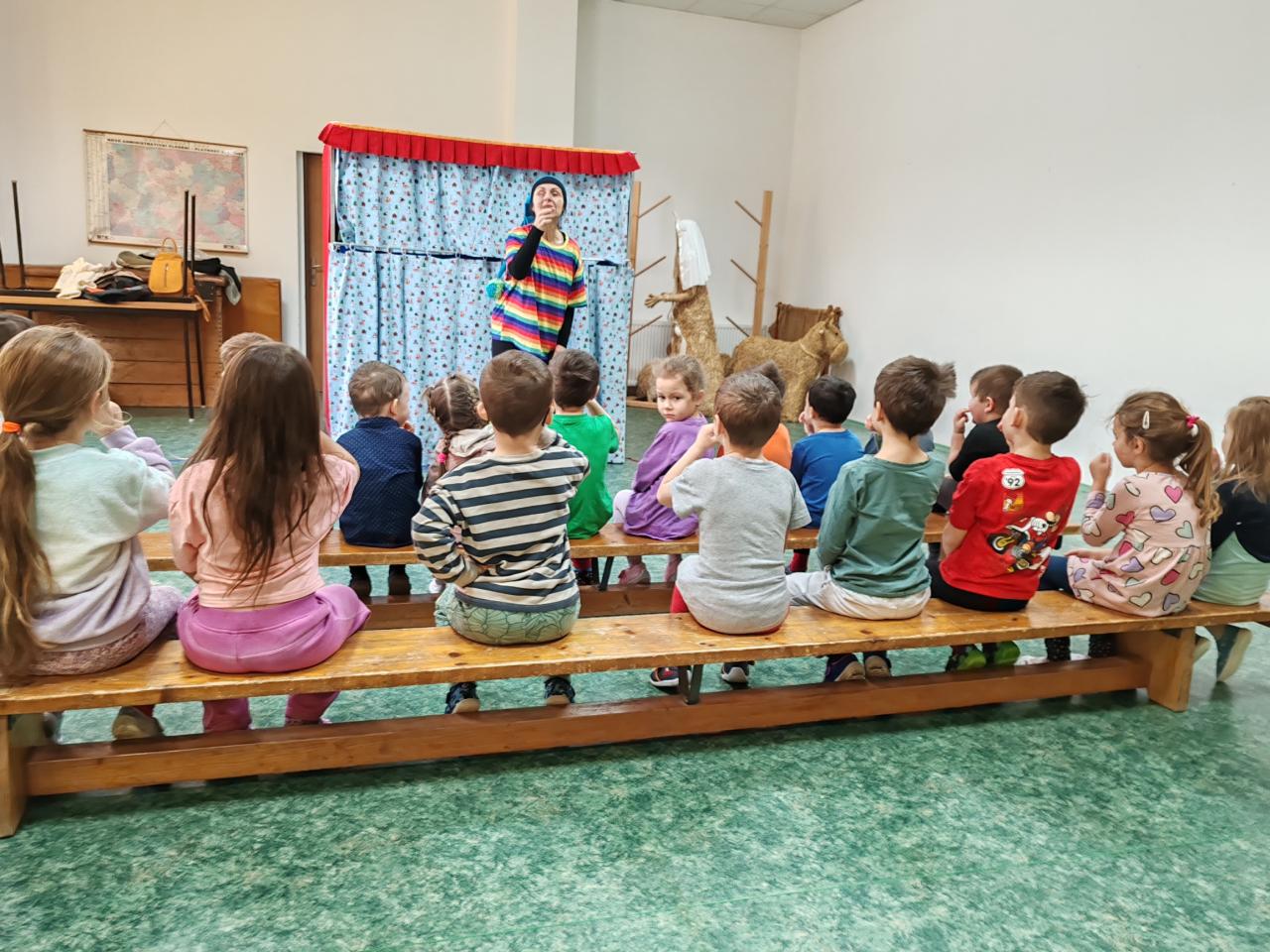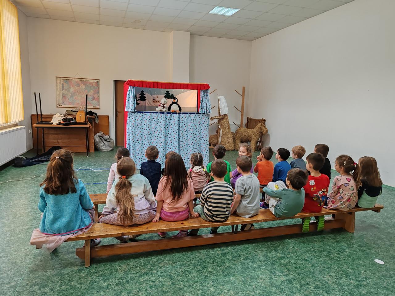 Dnes 14.1.2025 nás ve školce navštívilo divadélko Koloběžka s jejich povedenou Popletenou zimní pohádku