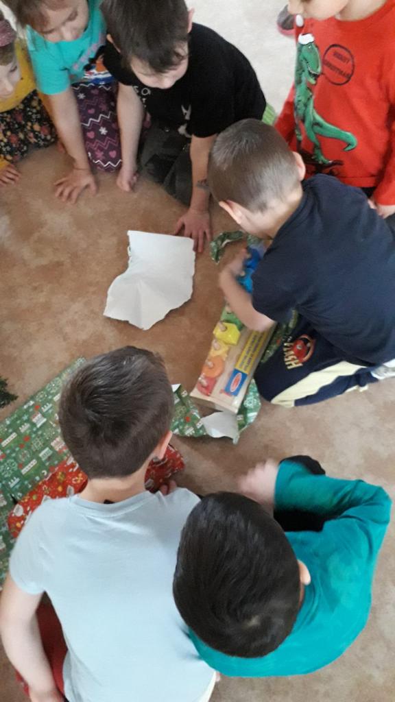Přinesl dětem knihy, hry a hračky.
