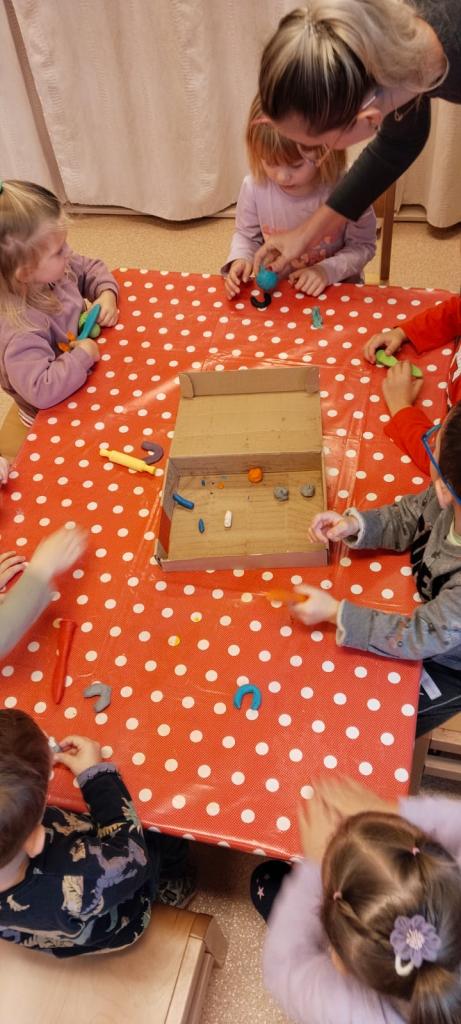 11.11.2025 Si děti připravovaly svačinku. Pekly svatomartinské rohlíčky, kdo nechtěl dělat rohlíčky z těsta mohl si je vytvarovat z modelíny.